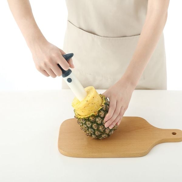 Thời may, đã có dụng cụ cắt dứa đa năng giúp mình giải quyết cùng lúc hai nỗi khổ này: vừa cắt được miếng dứa tròn đều, vừa giữ được vỏ ngoài nguyên vẹn. Một công đôi việc, bạn còn chần chừ gì nữa mà không sắm liền một cái đem về xài, đúng hơm?